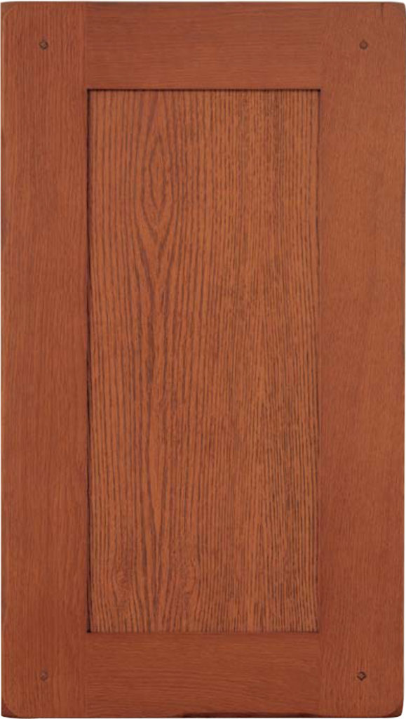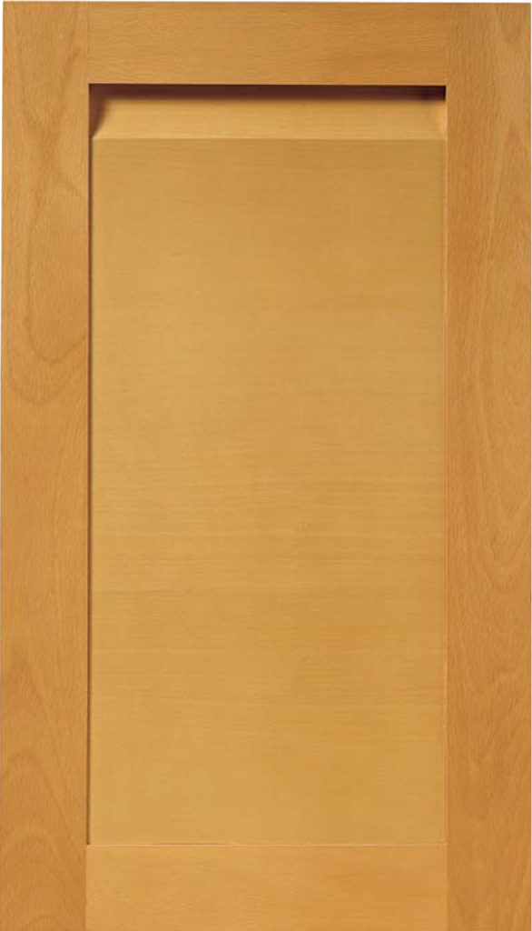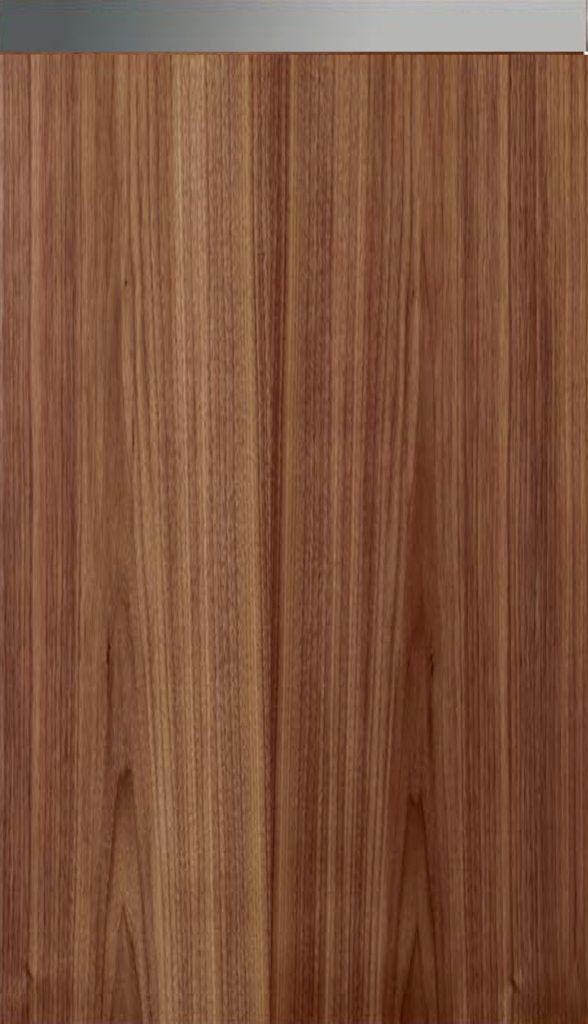 Puerta en tablero de fibra de 22 mm, macizados los cantos y rechapado en chapa natural, con tirador incorporado en madera maciza.